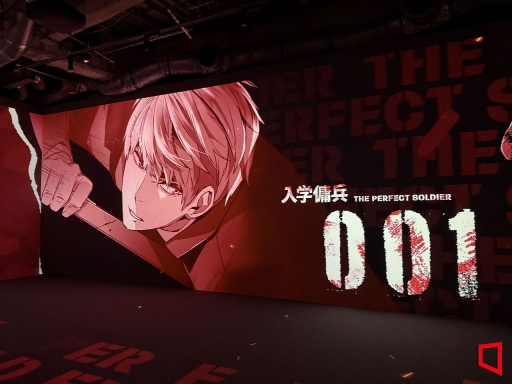 일본 도쿄도 시부야구 라인 프렌즈 스퀘어 시부야에서 진행 중인 웹툰 '입학용병'의 팝업스토어 현장에서 영상이 재생되고 있다. 이명환 기자