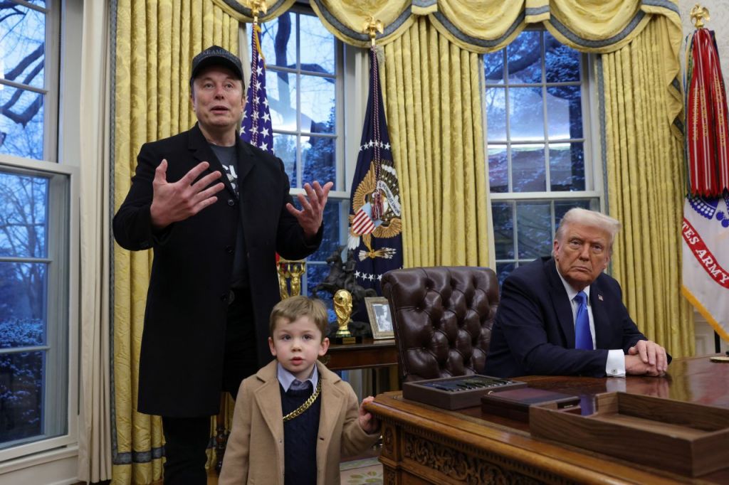 이날 행사는 대선 이후 머스크 CEO가 처음으로 기자들 앞에 선 것으로, 그는 검은색 마가(MAGA·Make America Great Again·미국을 다시 위대하게) 모자를 쓴 차림으로 트럼프 대통령의 결단 책상 옆에 서서 약 30분간 정부효율부가 추진하는 업무를 옹호했다. 이 자리에 아들 ‘엑시 애시 에이 트웰브(X Æ A-Xii)’도 데리고 왔다.
