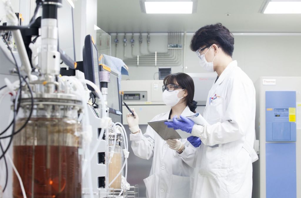 연구 결과를 분석중인 SK바이오사이언스 연구원들. 사진제공=SK바이오사이언스