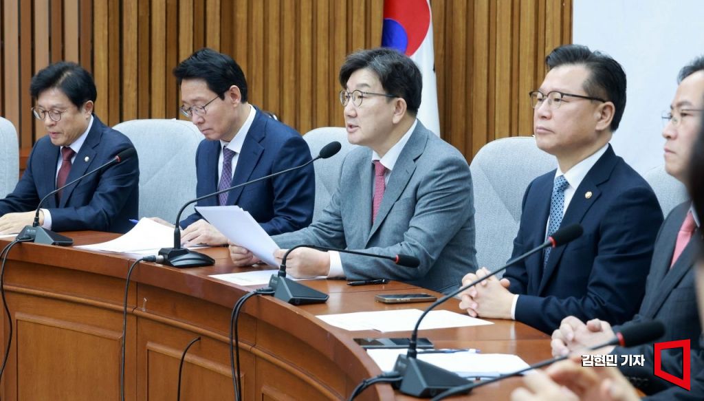 권성동 국민의힘 원내대표가 12일 국회에서 열린 원내대책회의에서 발언하고 있다.