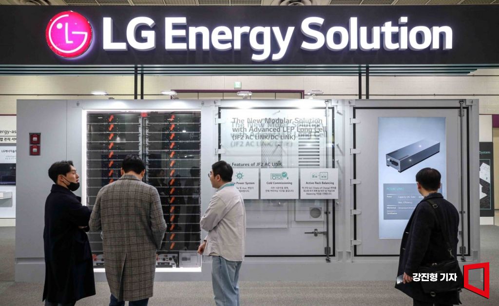 12일 서울 강남구 코엑스에서 열린 '일렉스 코리아 2025'에서 관람객들이 LG에너지솔루션 부스를 방문에 관계자에게 제품 설명을 전달 받고 있다.