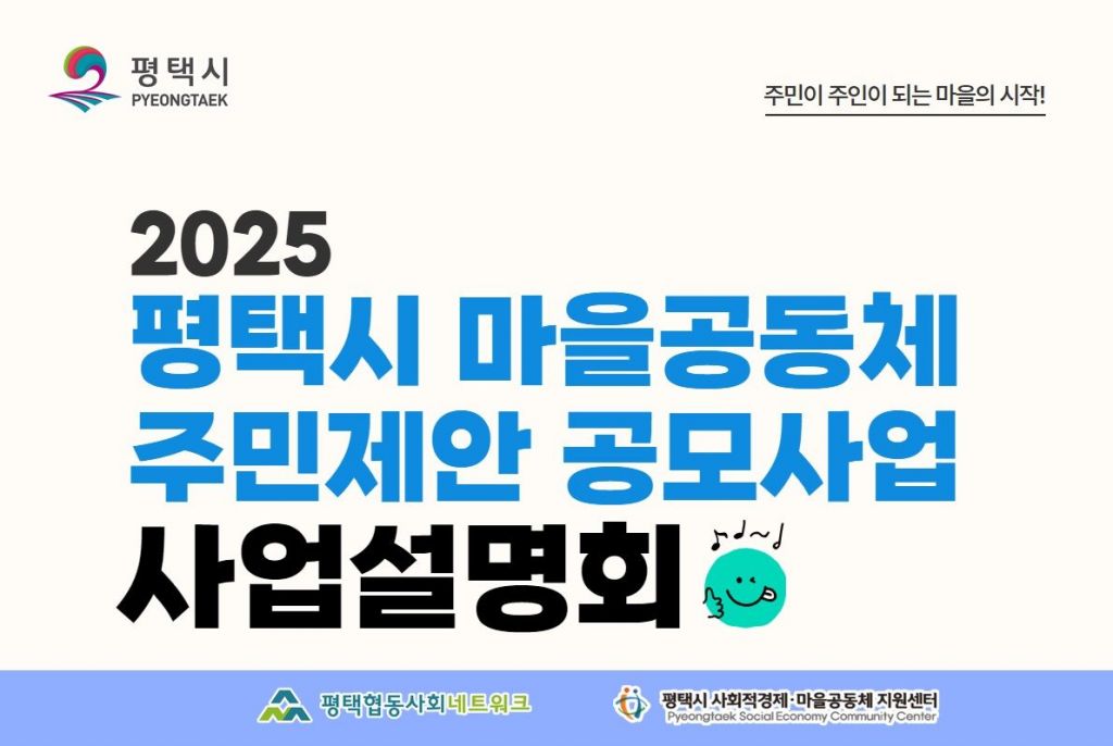 경기도 평택시는 주민들이 직접 참여하는 지속가능한 공동체 활동을 지원하기 위한 '2025년 평택시 마을공동체 주민제안 사업'을 12일부터 공모한다.
