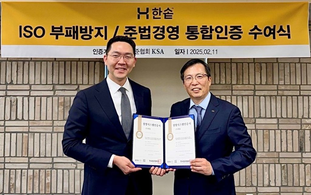 한국표준협회는 한솥에 ISO 37001(부패방지경영시스템) 및 ISO 37301(준법경영시스템) 인증서를 수여했다고 12일 밝혔다. 이번 인증을 통해 한솥은 국제적인 기준에 부합하는 투명하고 윤리적인 경영체계 및 지배구조를 인정받게 됐다.