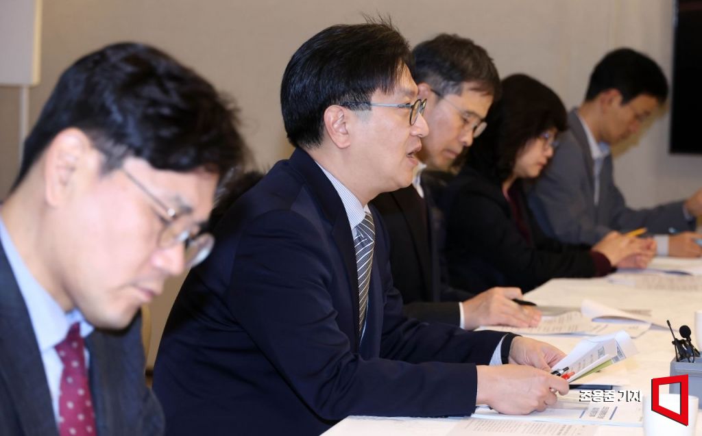 김범석 기획재정부 1차관이 12일 서울 종로구 정부서울청사에서 열린 경제관계차관회의 겸 물가관계차관회의에서 최근 경제현안에 대해 발언을 하고 있다.