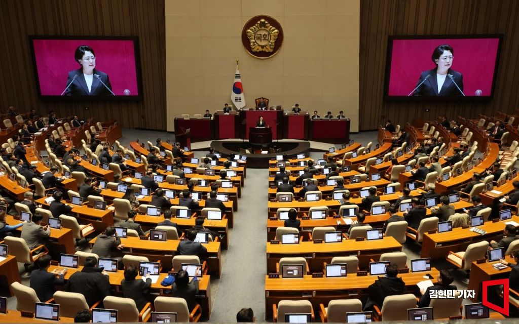 김선민 조국혁신당 대표 권한대행이 12일 국회 본회의에서 비교섭단체 대표연설을 하고 있다.