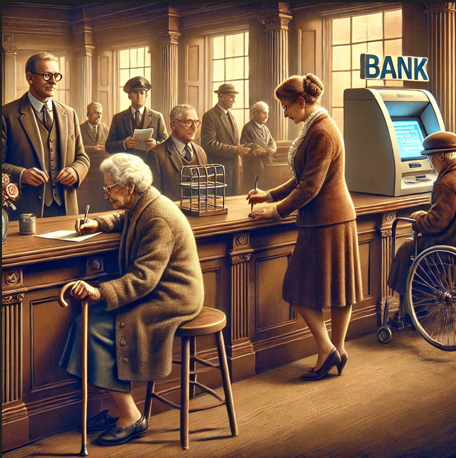 늙어가는 은행 고객들에 대한 AI 이미지(챗GPT)