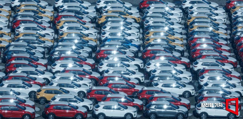 도널드 트럼프 대통령이 미국으로 수입되는 철강·알루미늄 제품에 대한 예외 없는 25% 관세 부과 포고문에 서명한데 이어 자동차와 반도체 등에 대한 관세 부과도 검토중이라고 밝힌 가운데 13일 경기 평택항에 수출용 자동차가 선적 대기하고 있다.