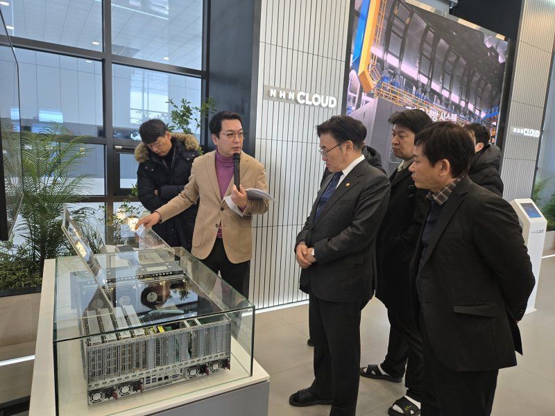 유상임 과학기술정보통신부 장관이 지난 6일 광주 인공지능(AI)산업융합 집적단지에서 광주 AI데이터센터 운영 현황을 점검하고 있다.