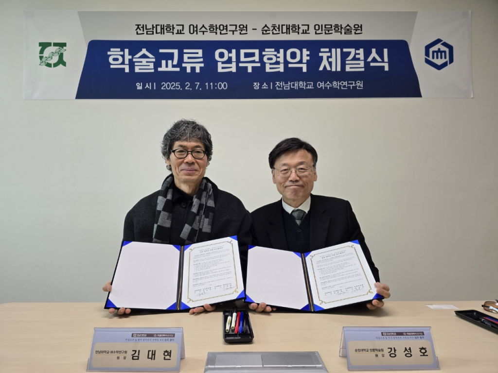 전남대학교 여수학연구원(김대현 원장)은 순천대학교 인문학술원(강성호 원장)과 학술연구 교류 기반을 마련하고 지역학 연구 활성화를 위한 네트워크를 구축하고자 업무협약을 체결했다고 14일 밝혔다.