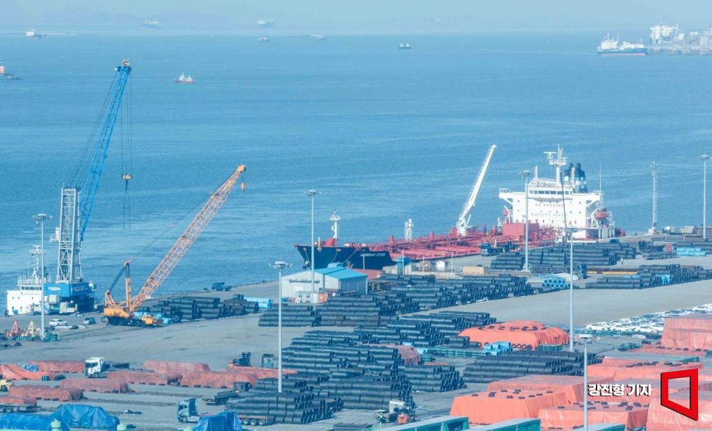 도널드 트럼프 대통령이 미국으로 수입되는 철강·알루미늄 제품에 대한 예외 없는 25% 관세 부과 포고문에 서명하면서 일본, 영국, 유럽연합(EU) 등 주요 국가들이 앞다퉈 대응에 나서고 있는 13일 경기 평택항 수출 야적장에 철강 제품이 쌓여 있다. 2025.2.13. 강진형 기자