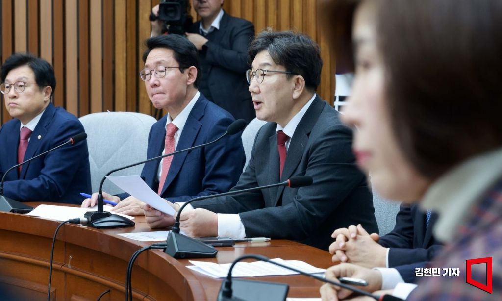 권성동 국민의힘 원내대표가 14일 국회에서 열린 원내대책회의에서 발언하고 있다.