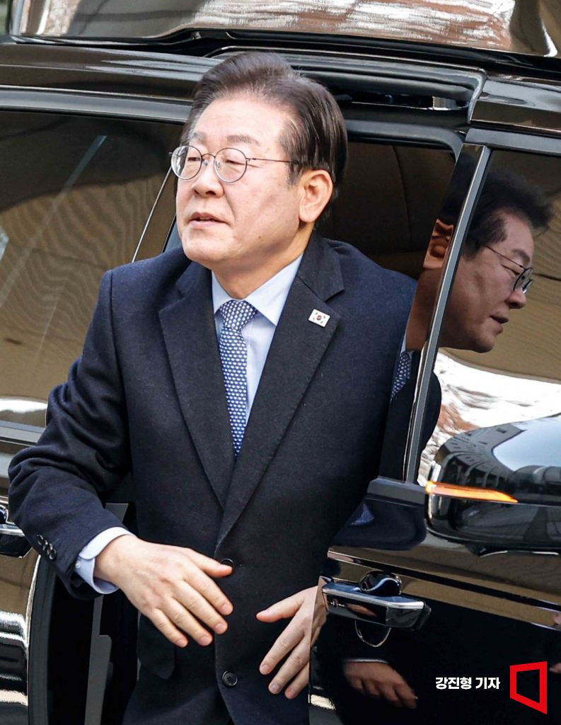 대장동 배임 및 성남FC 뇌물 혐의를 받고 있는 이재명 더불어민주당 대표가 14일 서울 서초구 서울중앙지방법원에서 열린 공판에 출석하고 있다.