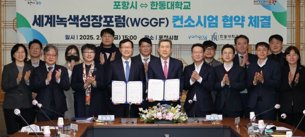 포항시는 14일 시청에서 한동대학교와 ‘세계녹색성장포럼(WGGF) 컨소시엄 업무협약’을 체결했다. 포항시 제공