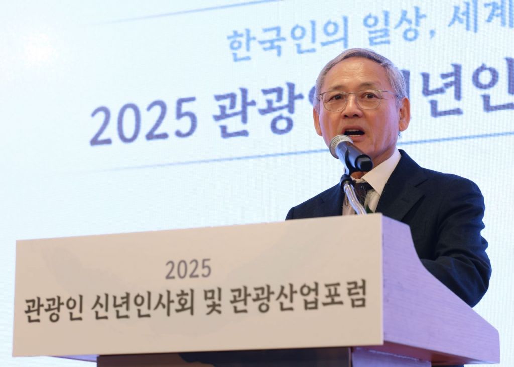 유인촌 문화체육관광부 장관이 14일 서울 중구 롯데호텔에서 열린 2025 관광인 신년인사회에서 인사말을 하고 있다. [사진 제공= 문화체육관광부]