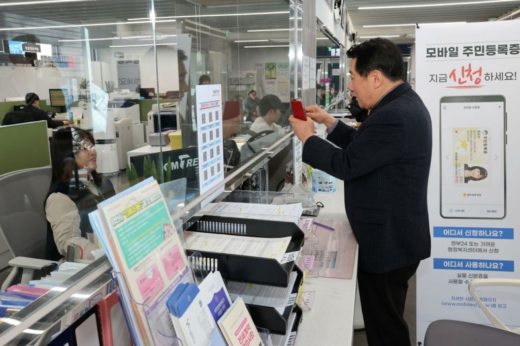 나동연 시장은 14일 삼성동 행정복지센터를 방문해 QR코드로 직접 모바일 주민등록증을 발급받고 담당 직원들을 격려했다. 나 시장은 “모바일 주민등록증 도입으로 디지털 시대에 걸맞게 시민들의 편의성이 크게 향상될 것”이라며 “앞으로도 스마트 행정을 통해 시민 불편을 최소화하는 다양한 서비스를 확대해나가겠다”고 말했다.