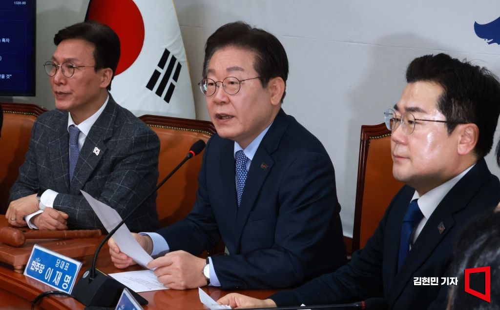 이재명 더불어민주당 대표가 14일 국회에서 열린 최고위원회의에서 발언하고 있다. 이 대표는 이 자리에서 "말로만 추경을 하자고 하고 구체적으로 협의해보면 전혀 할 생각이 없어 보인다"고 여당을 비판했다.2025.2.14 김현민 기자