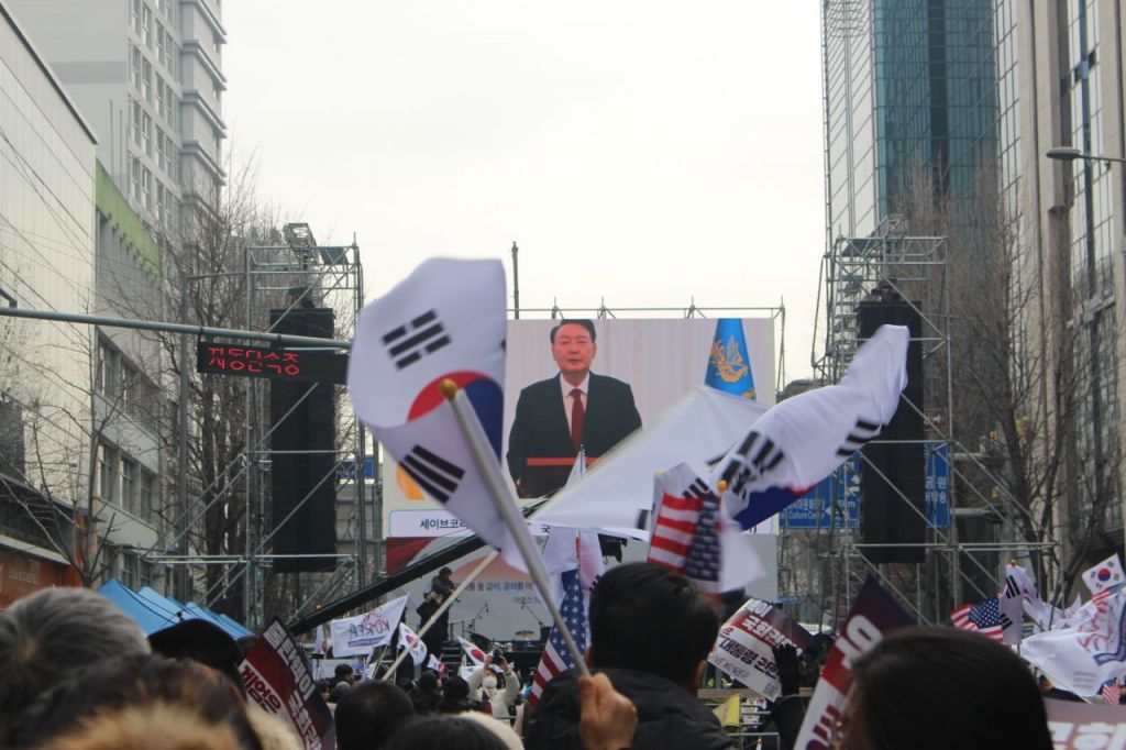 15일 오후 광주 금남로 일대에서 개신교 단체 세이브코리아가 국가비상기도회를 열고 윤석열 대통령 탄핵 반대와 석방을 촉구하고 있다. 송보현 기자