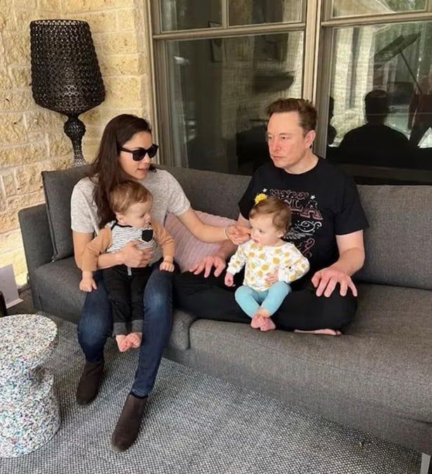 일론 머스크가 자신의 회사(뉴럴링크) 임원인 시본 질리스와 체외수정을 통해 낳은 아기들과 함께 있는 모습. X