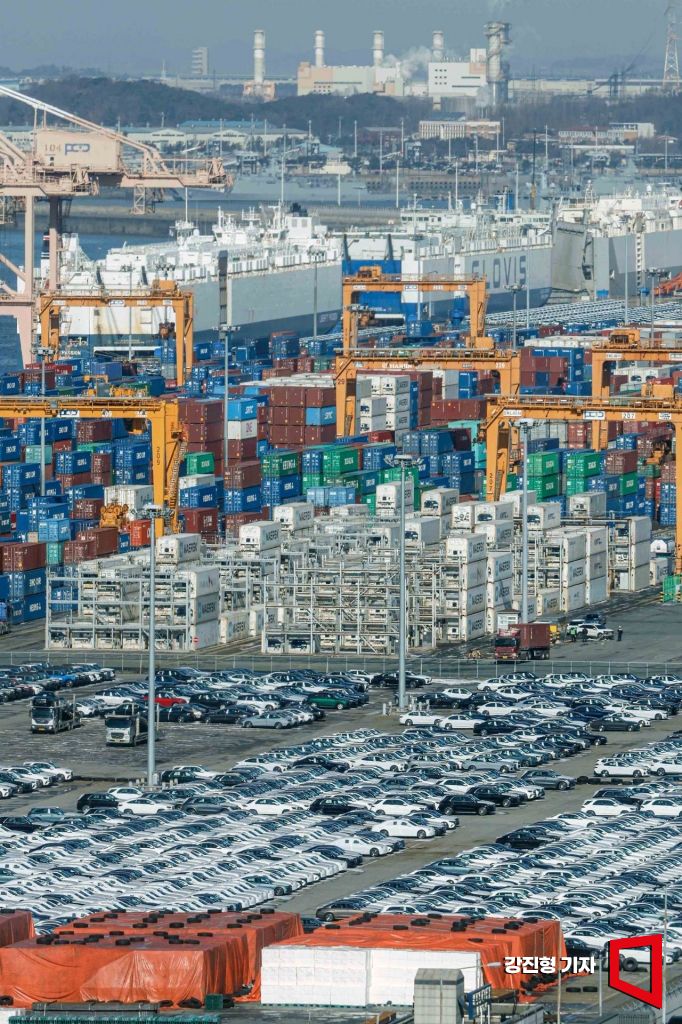 경기 평택항에 수출용 자동차가 선적 대기하고 있다. 2025.2.13. 강진형 기자