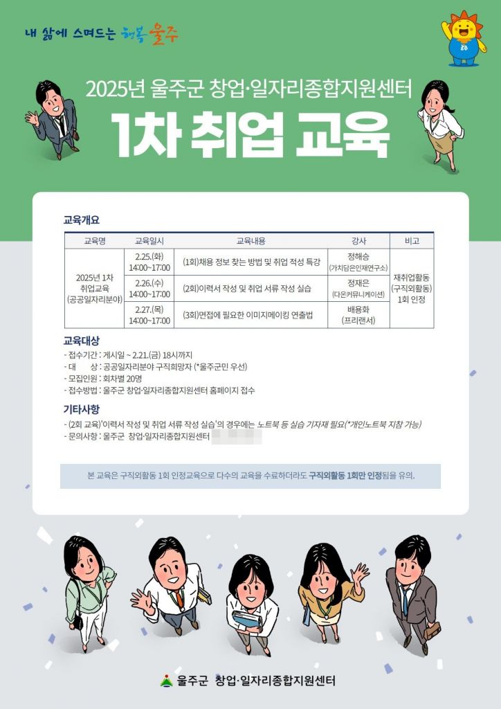 교육신청은 울주군 창업·일자리종합지원센터 홈페이지에서 할 수 있다.