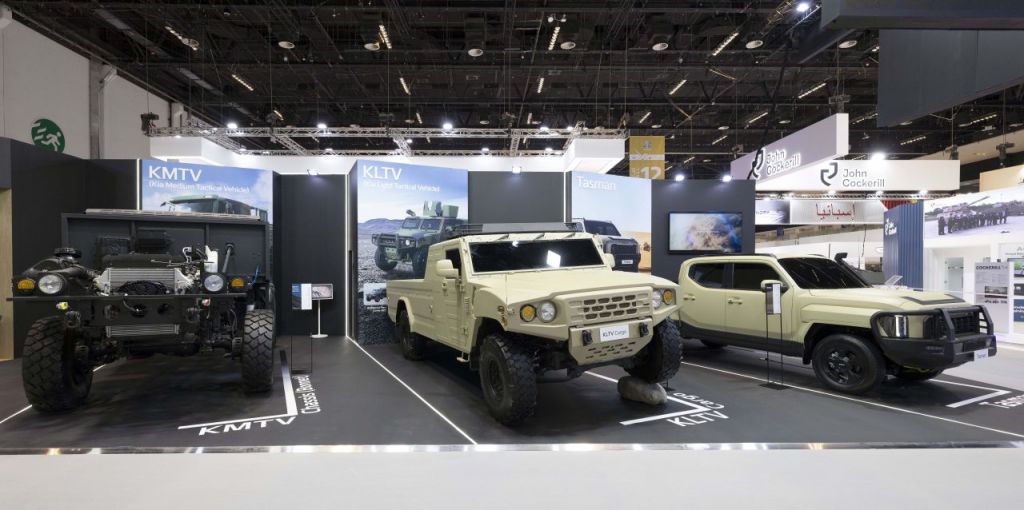 기아가 아프리카·중동 지역 최대 규모의 국제 방산 전시회에서 군용 차량과 픽업트럭 타스만을 선보인다.
