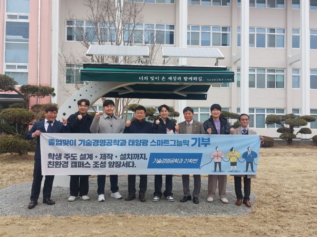 전주대학교 미네르바학부 기술경영공학과 2021학번 재학생들이 졸업을 맞아 ‘태양광 스마트그늘막’을 제작해 캠퍼스에 기부했다.