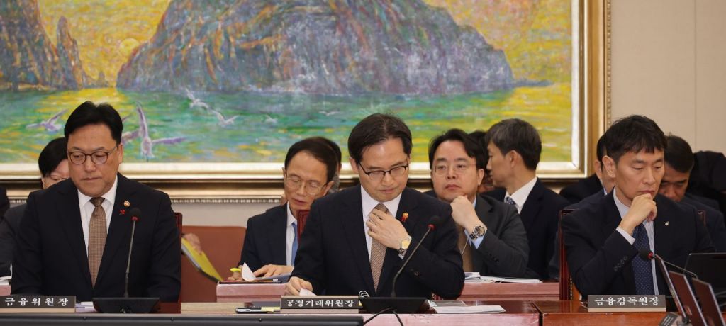 지난해12월18일 서울 여의도 국회에서 열린 정무위원회 전체회의에 김병환 금융위원장(왼쪽부터), 한기정 공정거래위원장, 이복현 금융감독원장이 참석해 있다. 연합뉴스