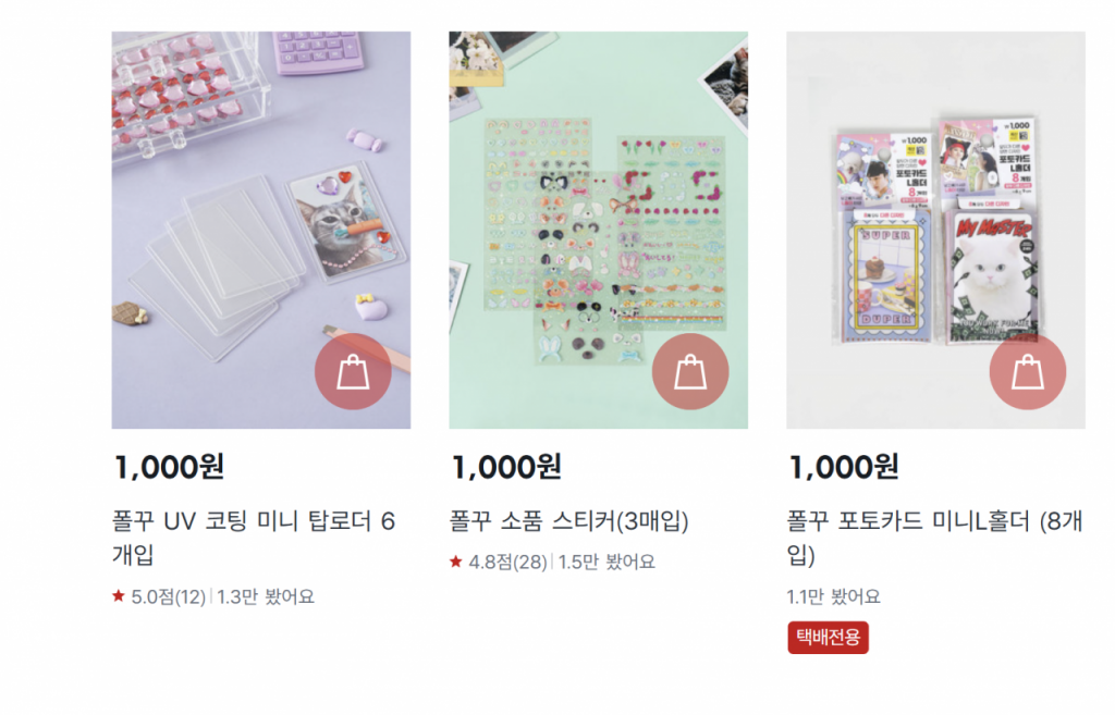 폴꾸용품은 제품 출시와 동시에 품절이 되는 등 인기가 뜨거웠다. 다이소는 여기에 시크한 무드를 좋아하는 최근 10대들의 흥미를 고려해 '하이틴 콘셉트'로 용품을 선보였고, 지난해에는 아이돌 증명사진이나 인생네컷까지 들어갈 수 있는 앨범도 출시했다. 포토 카드의 손상을 방지하는 '포카 커버'와 모은 포토 카드를 정리할 수 있는 바인더는 다이소 '초딩 대란템'으로 입소문이 나면서 수출까지 되고 있다.