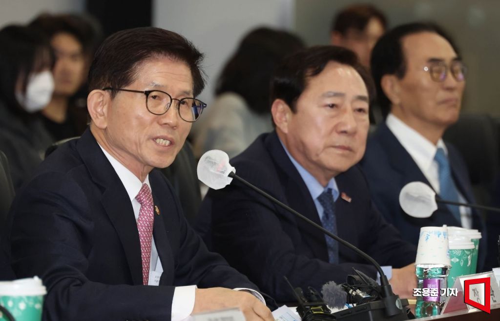 김문수 고용노동부장관이 17일 서울 여의도 중소기업중앙회에서 열린 중소기업인 간담회에 참석해 인사말을 하고 있다.