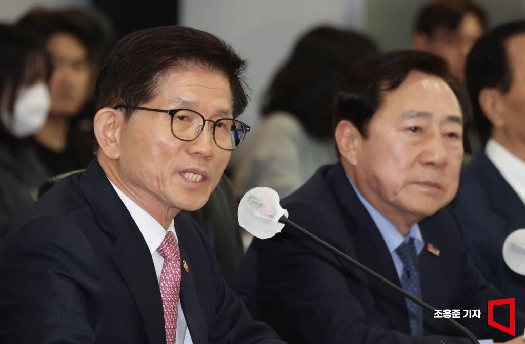 김문수 고용노동부장관이 17일 서울 여의도 중소기업중앙회에서 열린 중소기업인 간담회에 참석해 인사말을 하고 있다.