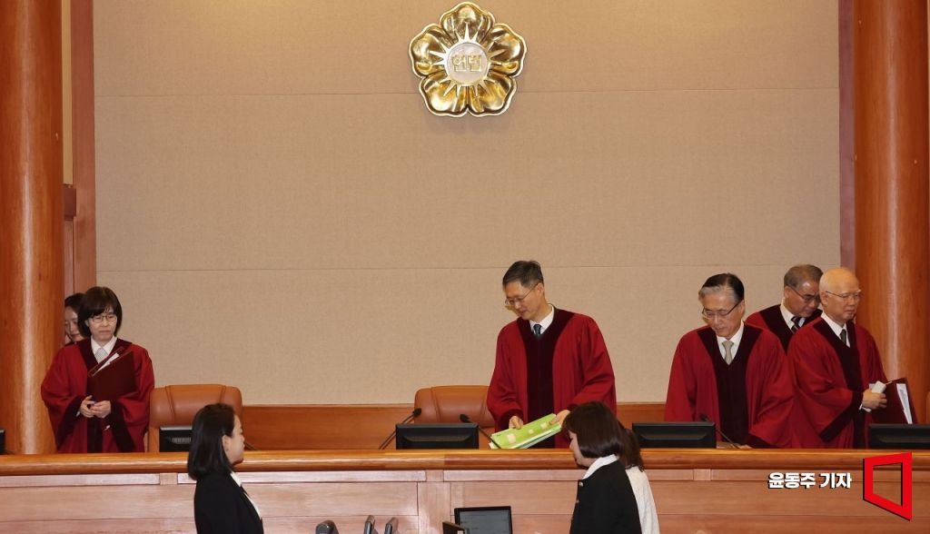 문형배 헌법재판소 소장 권한대행을 비롯한 헌법재판관들이 17일 서울 종로구 헌법재판소 대심판정에서 열린 이창수 서울중앙지검장, 조상원 중앙지검 4차장, 최재훈 중앙지검 반부패수사2부장 탄핵 심판 첫 정식 변론에 참석해 자리하고 있다. 2025.02.17 윤동주 기자