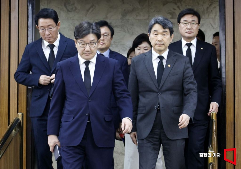 권성동 국민의힘 원내대표와 이주호 사회부총리 겸 교육부 장관이 17일 국회에서 열린 학교 안전 강화를 위한 당정협의회에 참석하고 있다.