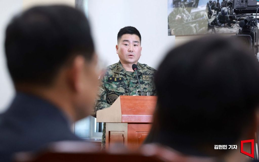 김현태 707특수임무단장이 17일 국회 국방위원회 전체회의에서 여당 위원들의 질의에 답하고 있다. 이날 회의는 더불어민주당 의원들의 회유 의혹과 관련해 성일종 위원장 직권으로 야당 의원들이 불참한 가운데 열렸다.