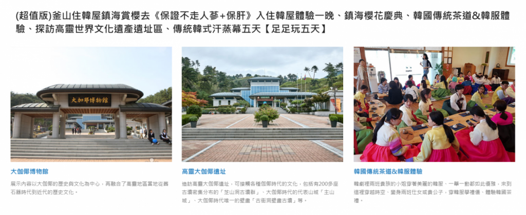 고령군은 작년 연말부터 대만 단체관광객을 다시 유치하기 위해 화은국제여행사와 협력·노력한 결과 타이베이에서 출발해 대구국제공항을 통해 입국하는 경북, 부산연계 4박 5일간 한국여행에서 세계유산이 있는 고령으로 와 가야문화와 한국의 전통문화를 체험하는 여행상품을 구성했다.