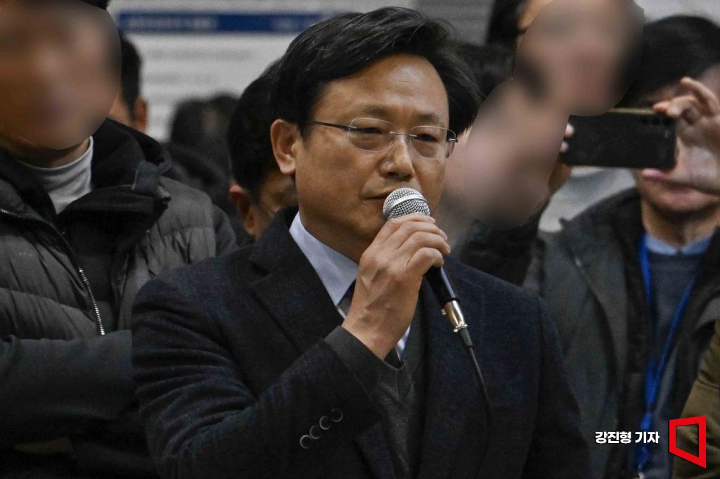 김이배 제주항공 대표이사가 지난해 12월 29일 전남 무안군 무안국제공항에서 유가족들을 만나 사과하고 있다. 강진형 기자
