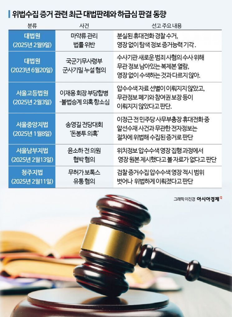 수사기관의 잘못된 증거 채집 관행에 법원이 잇따라 제동을 거는 것은 ‘증거의 왕’으로 불리는 전자정보(휴대전화나 서버에 집적되는 개인정보 등)가 워낙 방대하고, 인권 침해 위험이 크기 때문이다. 수사기관들로선 그만큼 별건 수사 활용 등 유혹에 빠지기 쉽다.