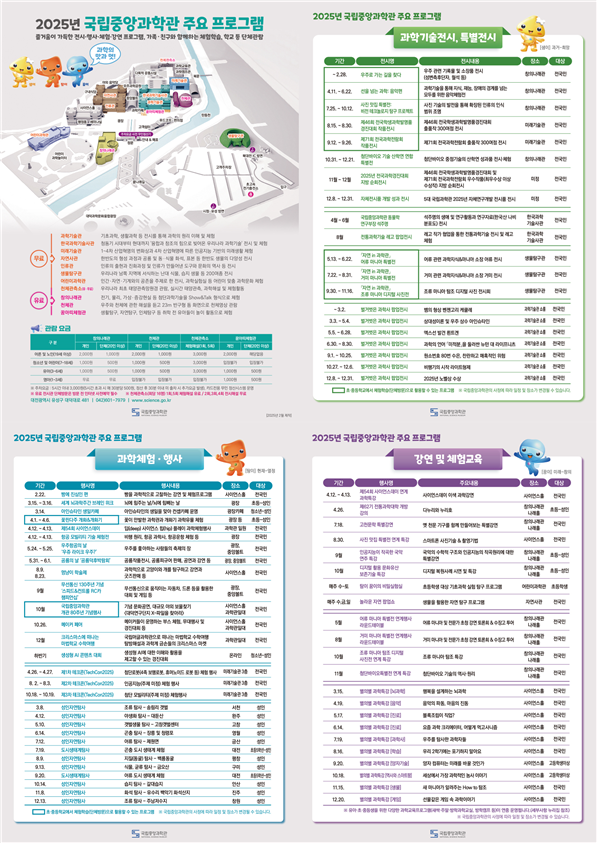 '2025년 국립중앙과학관 주요 프로그램' 개최 일정에 대한 자세한 내용은 국립중앙과학관 누리집에서 확인할 수 있다.