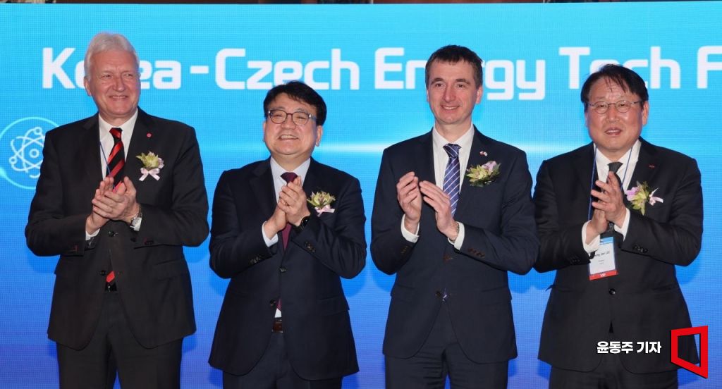 18일 서울 중구 롯데호텔에서 열린 ‘한·체코 에너지기술 포럼’에 참석한 최남호 산업통상자원부 차관(오른쪽 3번째)과 루카쉬 블첵 체코 산업통상부 장관(오른쪽 두번째) 등 주요 내빈들이 기념촬영을 하고 있다. 한국에너지기술평가원과 체코기술청 공동 주관으로 열린 이번 행사에서는 원전·청정수소 등 무탄소에너지 기술 분야의 산학연 협력 방안을 논의했다.