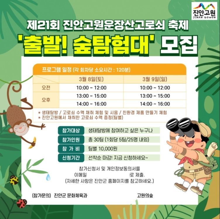 제21회 진안고원 운장산 고로쇠축제 '출발! 숲탐험대' 모집 포스터. 진안군 제공