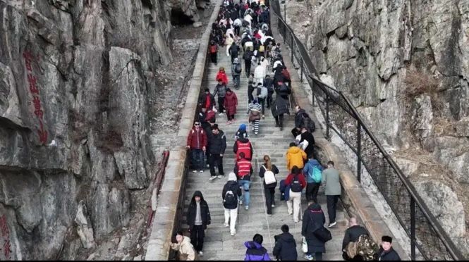 중국 산둥성 태산에 등산을 도와주는 로봇이 등장했다.