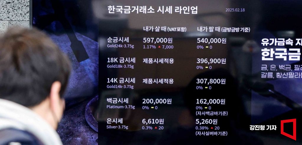 금값이 고공행진하며 골드바 품귀현상이 벌어지고 있는 18일 서울 종로구 한국금거래소 종로본점 모니터에 금 시세가 표시돼 있다.