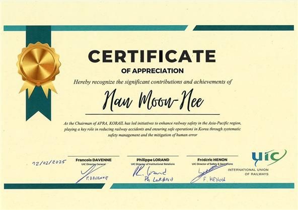 현재 한문희 코레일 사장은 UIC 아시아태평양지역 의장을 맡아 해외 철도산업 발전과정에서 리더십을 발휘하는 중이기도 하다.
