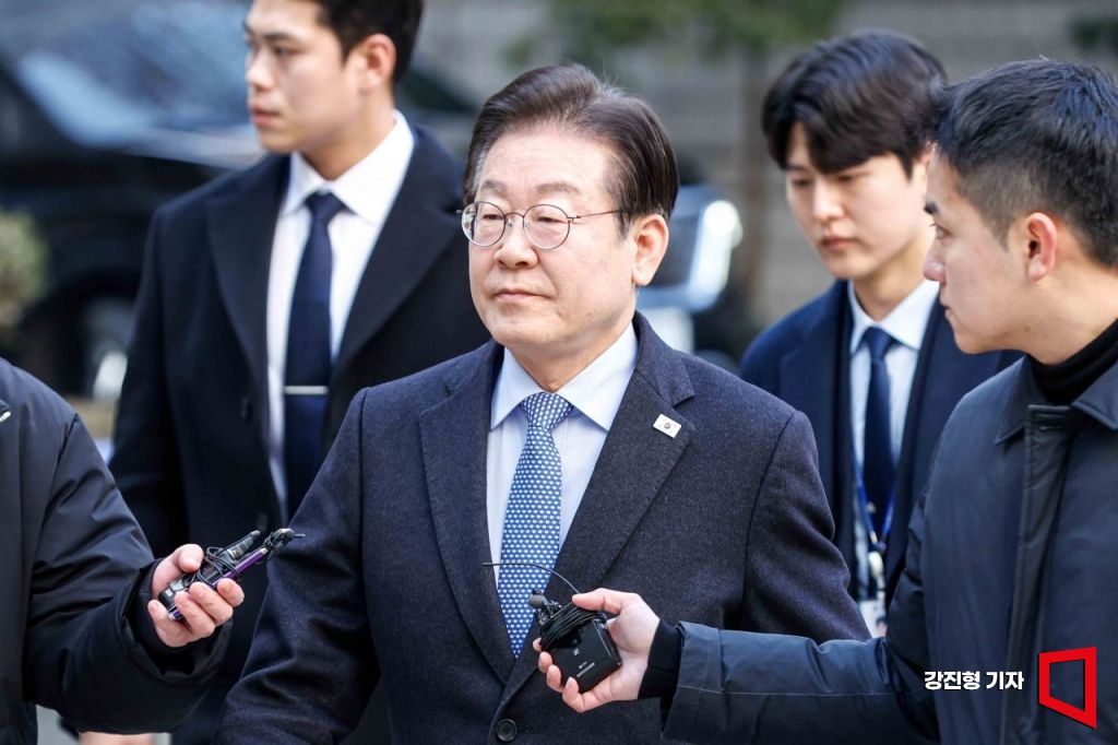 대장동 배임 및 성남FC 뇌물 혐의를 받고 있는 이재명 더불어민주당 대표가 14일 서울 서초구 서울중앙지방법원에서 열린 공판에 출석하고 있다. 2025.2.14. 강진형 기자