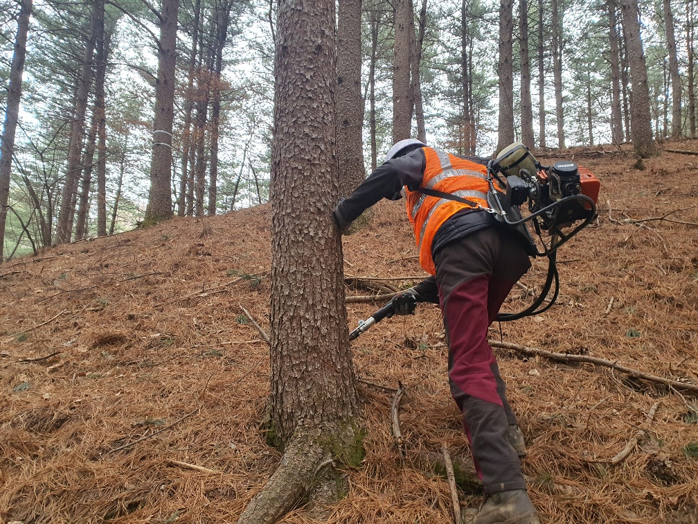 제거된 감염목은 재선충병의 확산을 막기 위해 파쇄, 그물망 피복 등 철저한 방제 절차를 거쳐 처리된다.