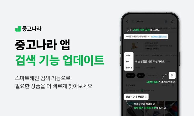 중고나라앱 검색 기능 업데이트. 중고나라 제공