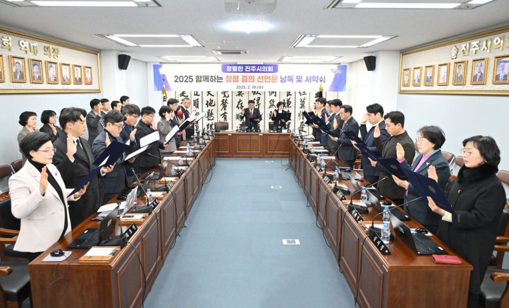 경남 진주시의회는 지난 19일 제262회 임시회를 앞두고 청렴한 의정 실천을 위한 ‘2025 함께하는 청렴 결의 선언문 낭독 및 서약식’을 진행했다.