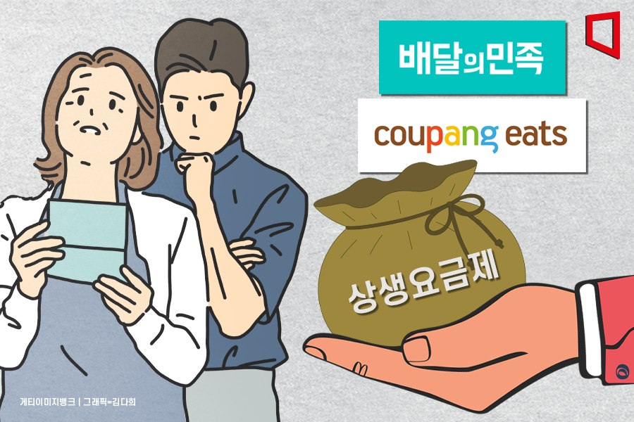 배달 앱 시장 1, 2위인 배달의민족과 쿠팡이츠가 지난해 합의한 상생 요금제 시행 초읽기에 들어갔다. 현행 9.8%의 수수료를 인하해 매출에 따라 2.0%~7.8%로 차등 적용한다는 큰 골격은 같다. 하지만 구간 산정 방식과 신규 입점 업체 적용 수수료 등에서 차이가 있다. 첫 시행인 만큼 어떤 방식이 상생협의체의 취지에 부합할지 가늠하기 어렵다는 게 업계의 설명이다. 각 업체는 시행 과정에서 입점 업체의 의견을 청취해 향후 운영에 반영할 계획이다.