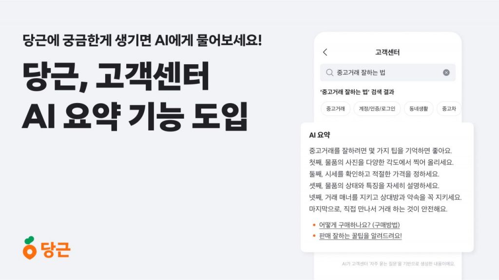 국내 대표 지역생활 커뮤니티 당근은 이용자가 서비스 사용 도중 생기는 문의사항을 쉽고 빠르게 확인할 수 있도록 돕는 ‘고객센터 AI 검색 및 요약 기능’을 도입했다고 21일 밝혔다.