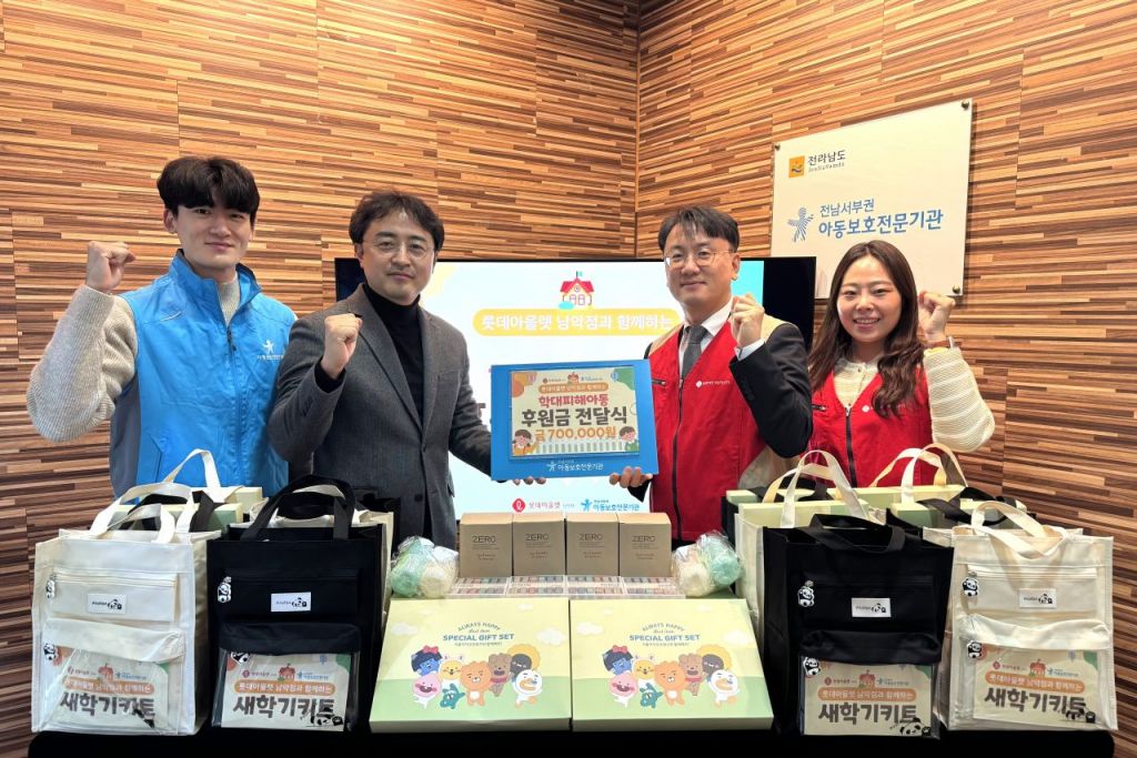 롯데아울렛 남악점(점장 김대홍)은 지난 20일 전남 서부권 아동 보호 전문기관에 방문해 학용품 꾸러미를 전달했다고 21일 밝혔다.