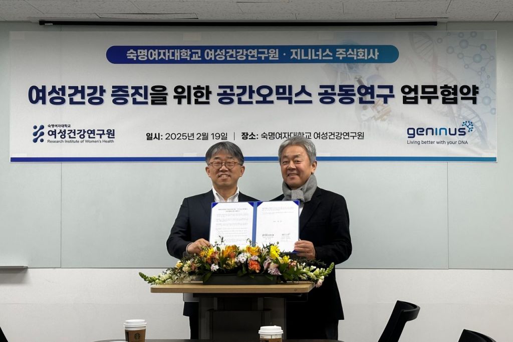 숙명여대 여성건강연구원은 지난 19일 지니너스와 '여성건강 증진을 위한 업무협약'을 체결했다고 21일 밝혔다.